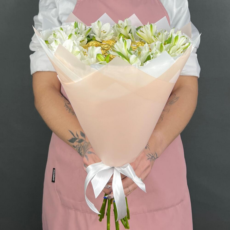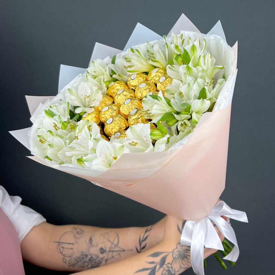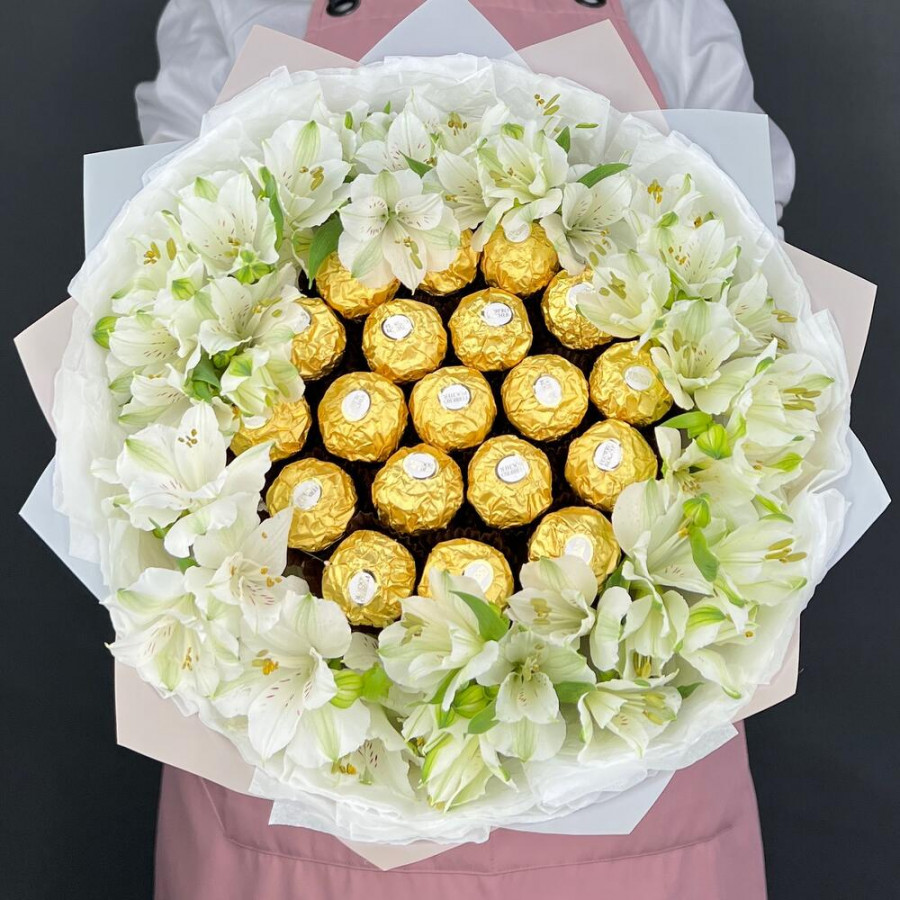 Букет из конфет Ferrero Rocher и и альстромерии в Троицке